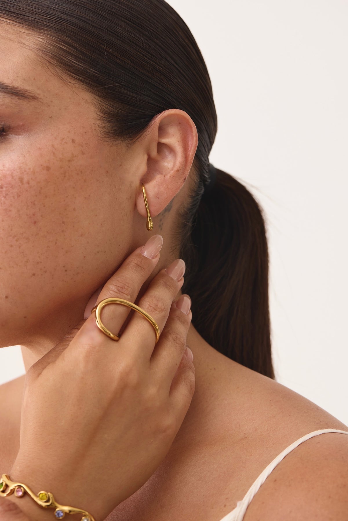 Our pieces are made with titanium steel and coated in PVD gold plating — a long-lasting, tarnish-resistant finish that’s more durable than traditional gold plating. It’s water-resistant, hypoallergenic, and safe for sensitive skin.