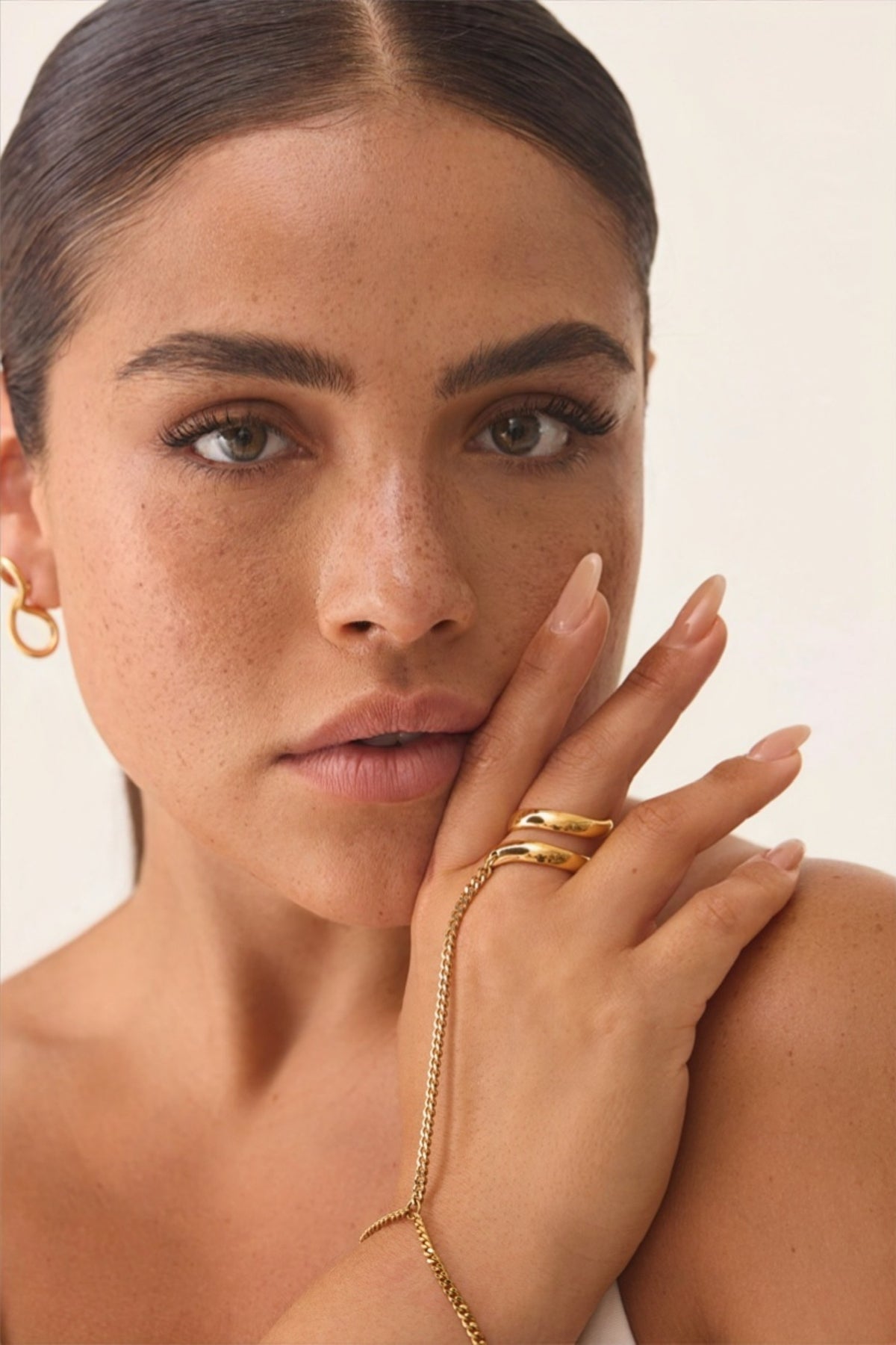 Our pieces are made with titanium steel and coated in PVD gold plating — a long-lasting, tarnish-resistant finish that’s more durable than traditional gold plating. It’s water-resistant, hypoallergenic, and safe for sensitive skin.