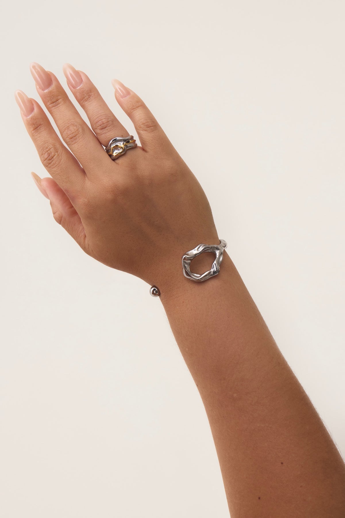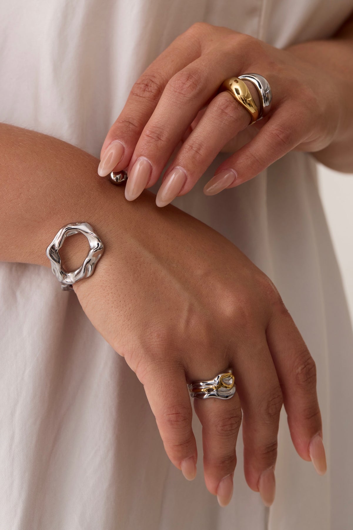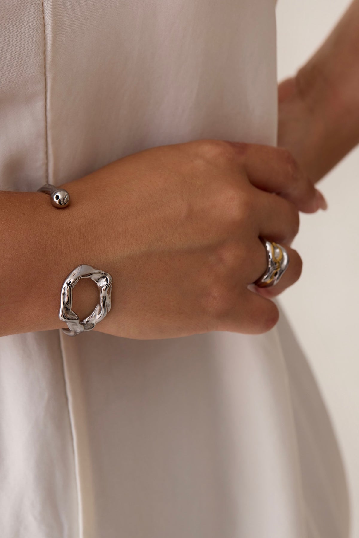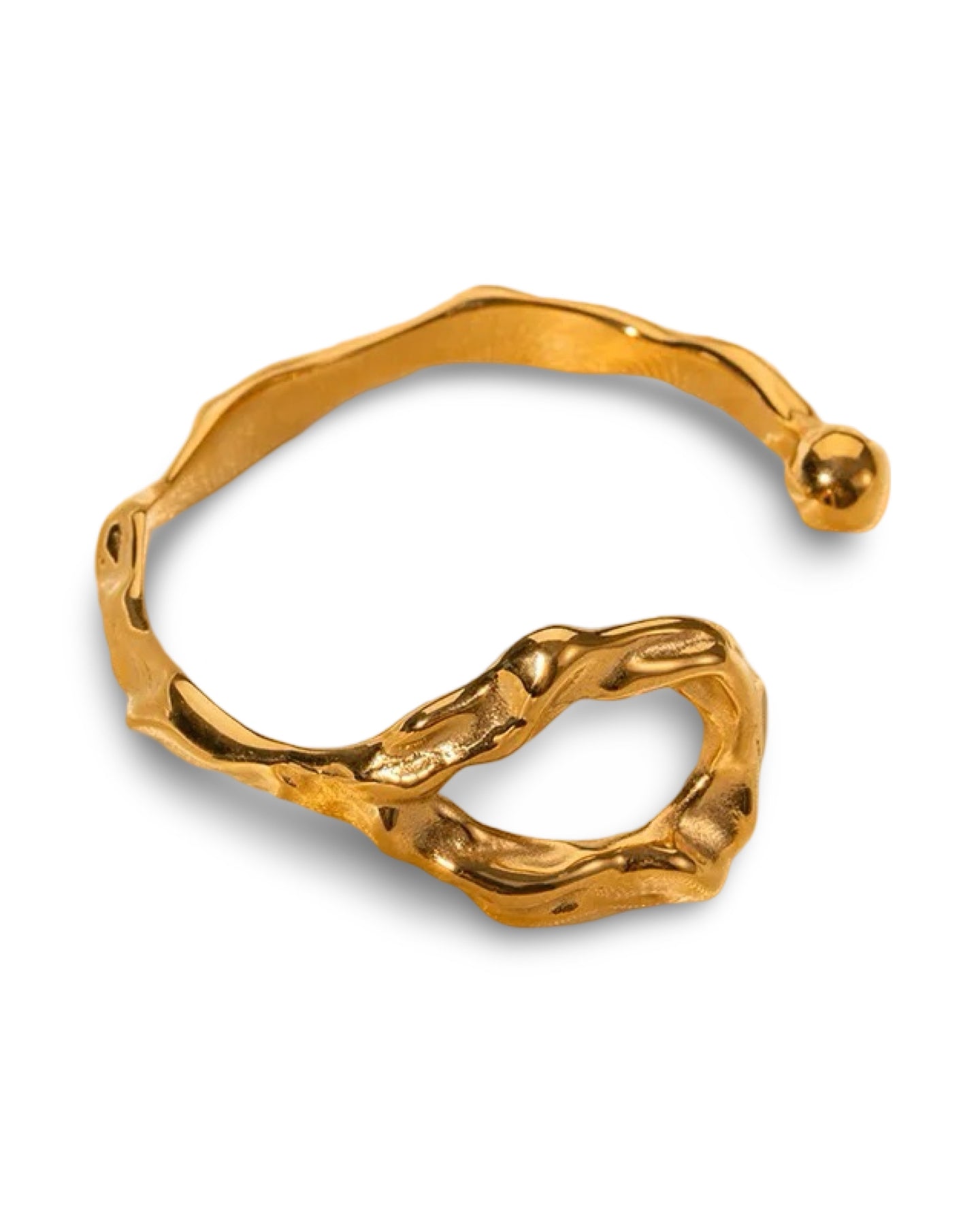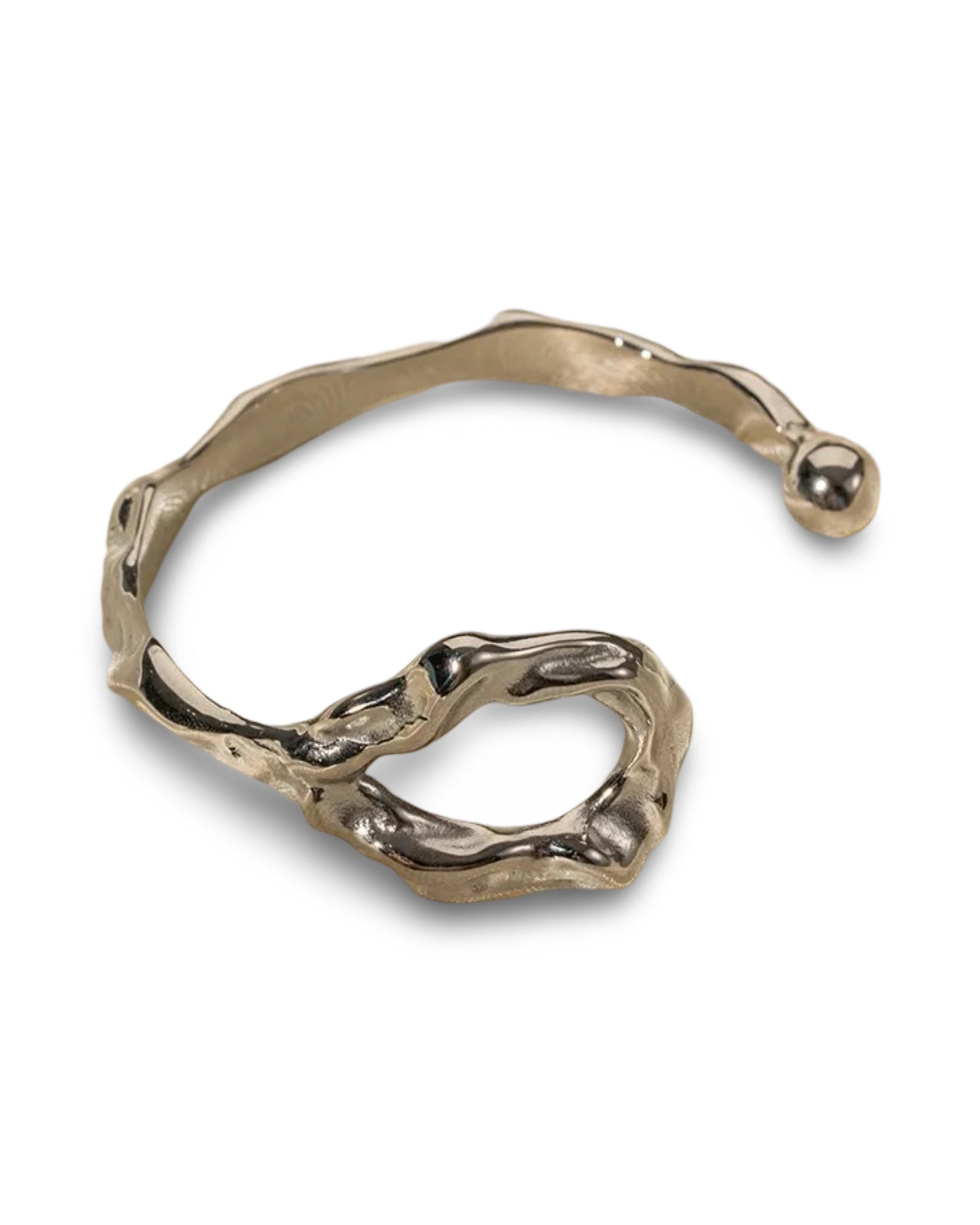 This stunning piece showcases a beautifully textured surface that adds depth & character while the molten detailing at the front serves as the striking focal point. Made from high-quality materials, this bangle combines style with comfort, making it perfect for everyday wear or special occasions. Its unique design allows for easy on-and-off wear, while the textured finish ensures it catches the light beautifully.