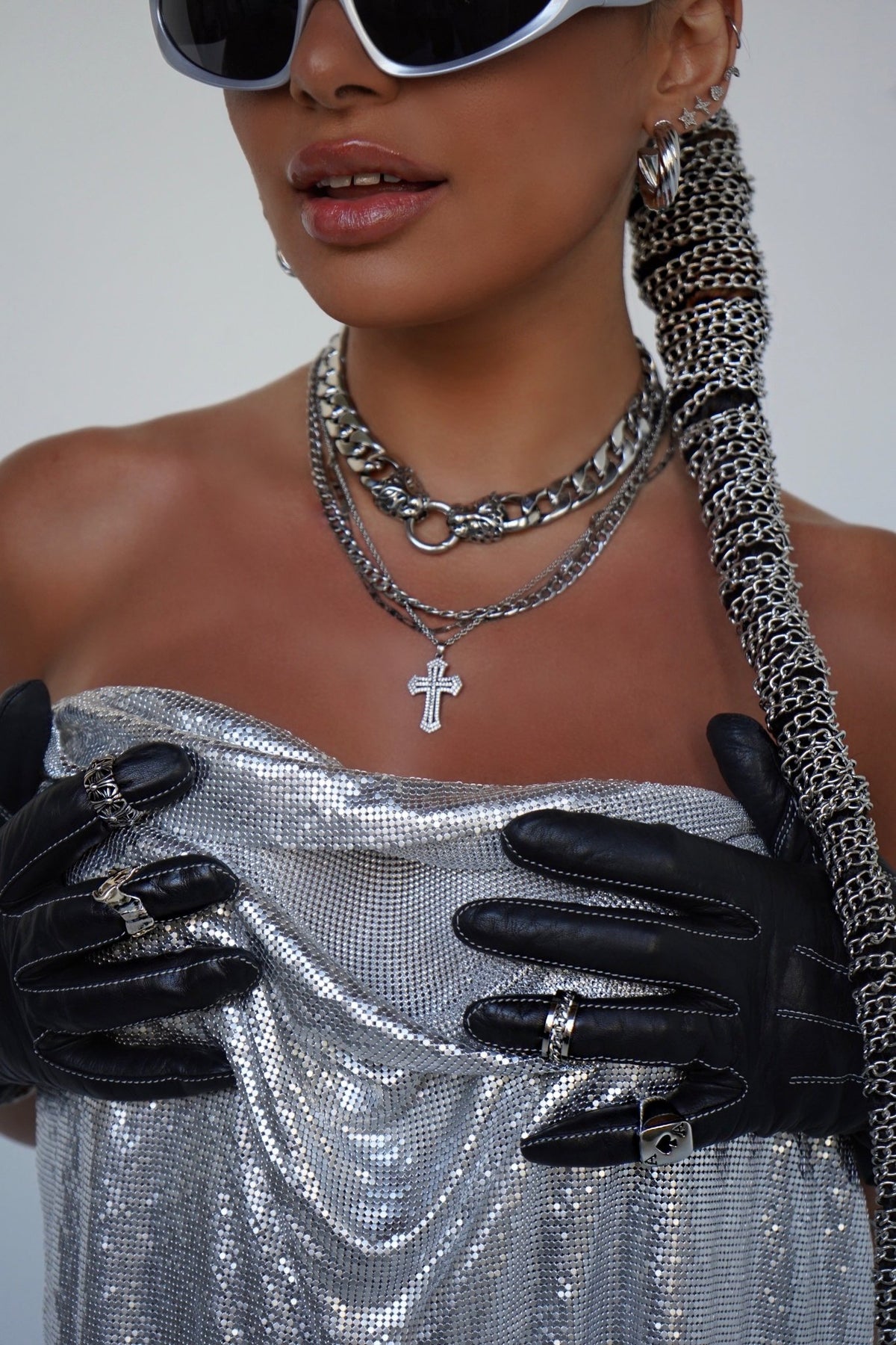 This custom-made curb chain features a striking tiger clasp pendant at its center—designed to lock in attention. Crafted from durable stainless steel for lasting wear and a cool, sculptural edge.