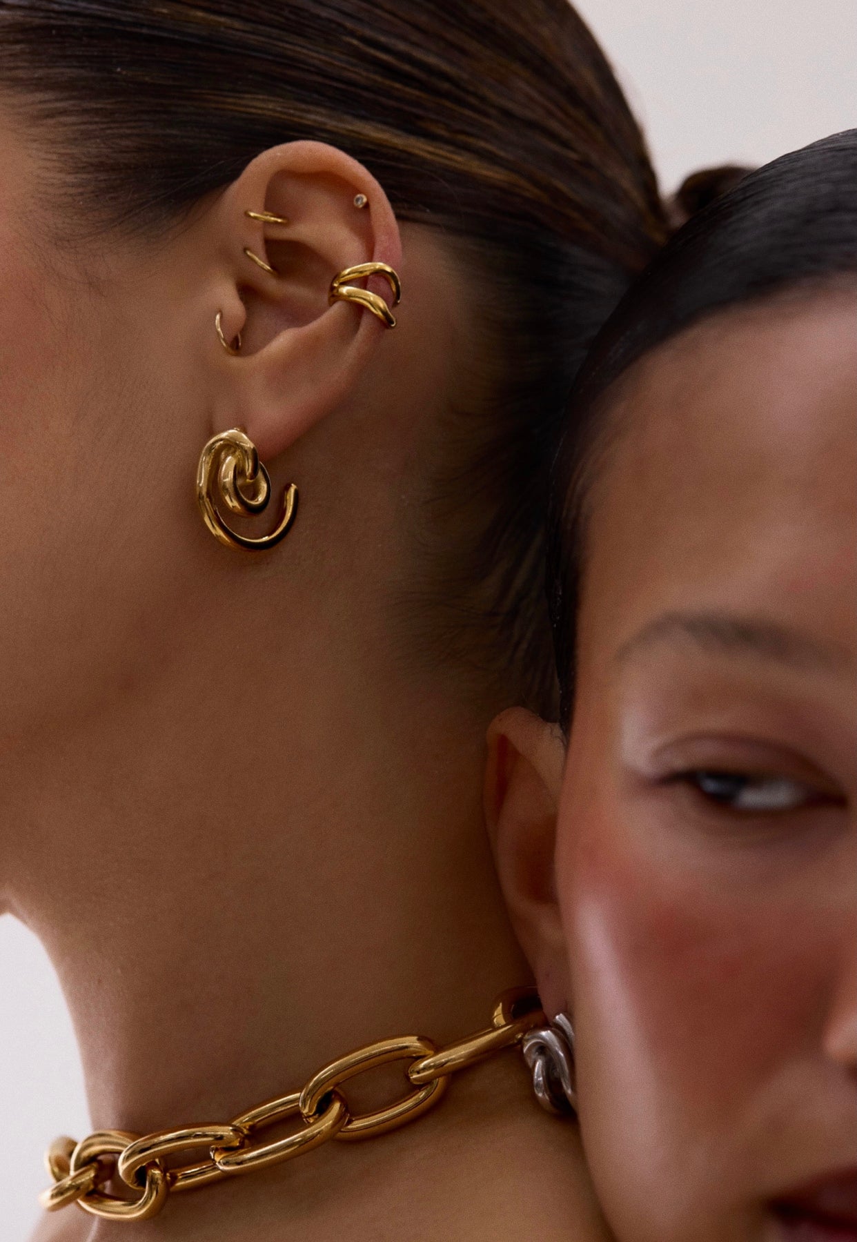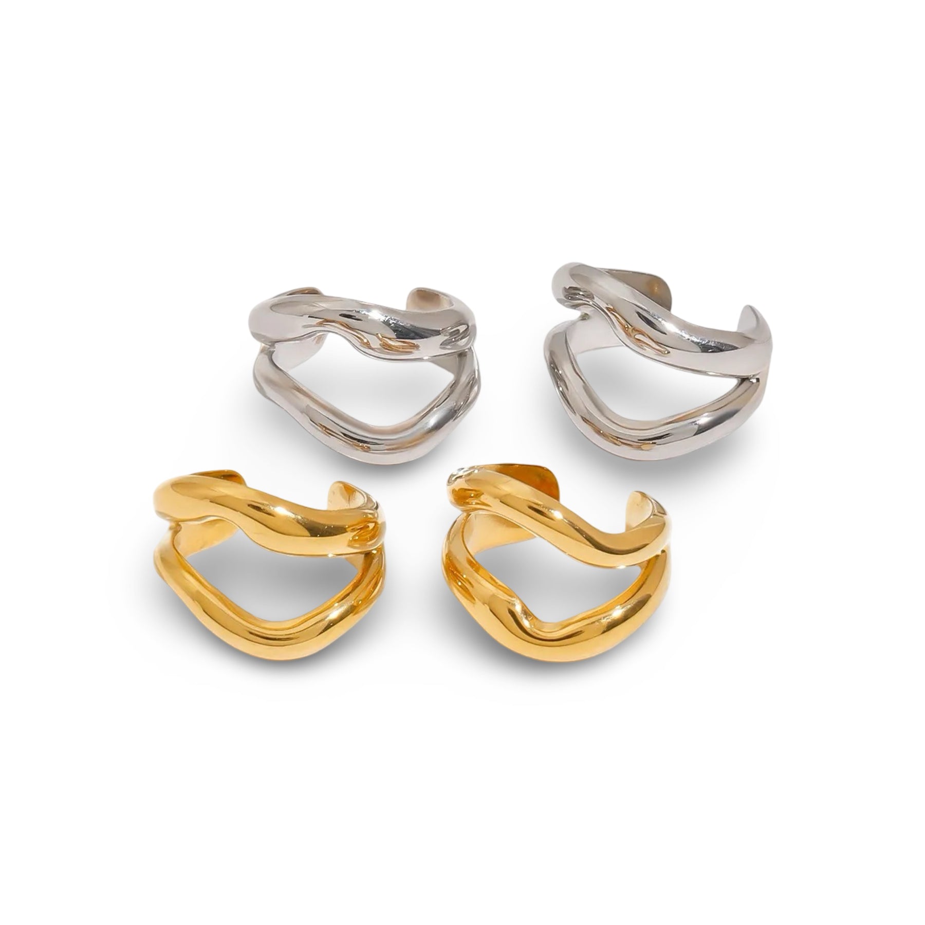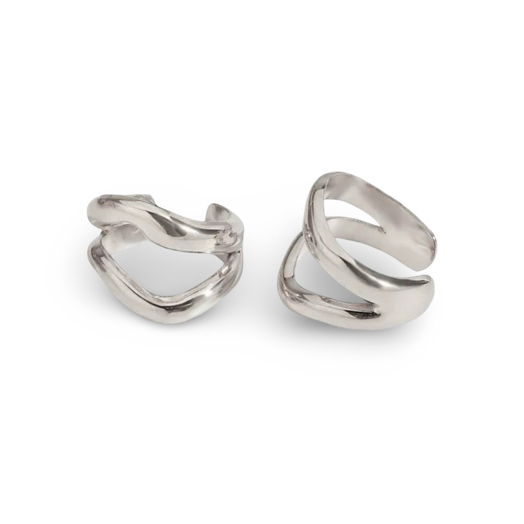 A sleek, single high-polish ear cuff designed for a secure and fully adjustable fit. Its double, textured form hugs the ear comfortably—no piercing needed. Lightweight yet substantial, this piece molds to you, making it perfect for any ear shape or stack.