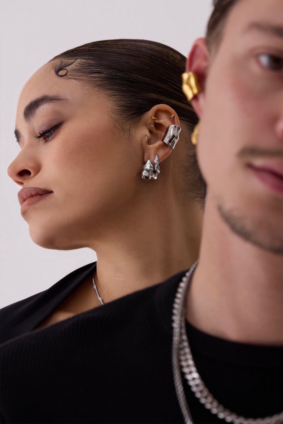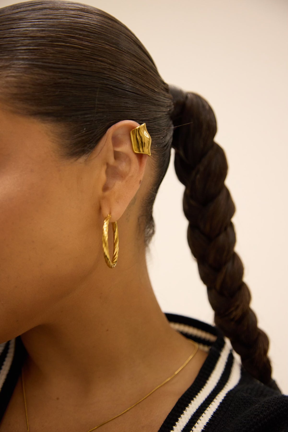 A must-have addition to upgrade your ear stack - this ear cuff features a striking textured finish that adds depth and dimension, making it a standout piece for any look. It's bold design ensures a secure and comfortable fit, allowing you to effortlessly enhance your collection.