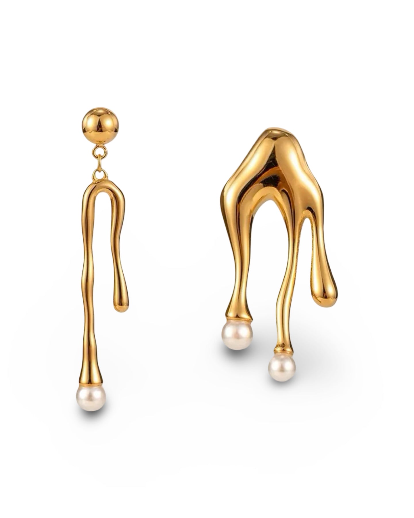 A contemporary design, featuring asymmetrical metalwork that frames the freshwater pearls. These earrings are perfect for those who appreciate individuality & timeless one-of-a kind pieces.