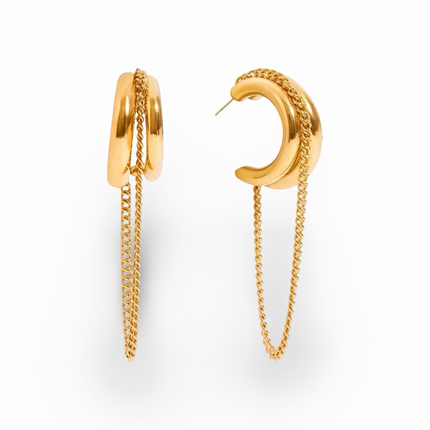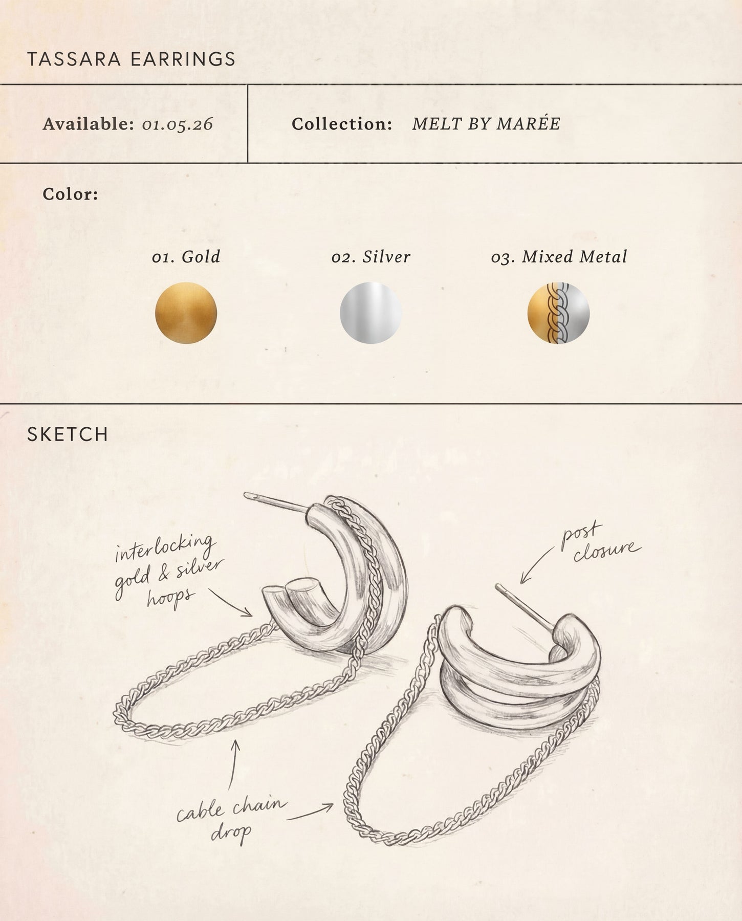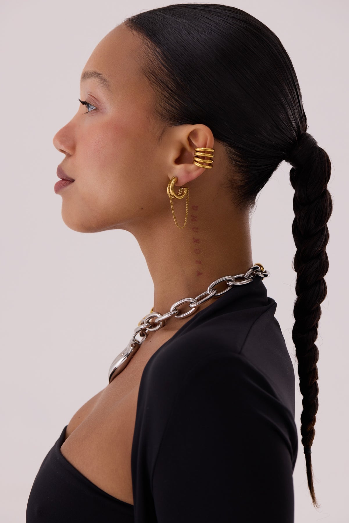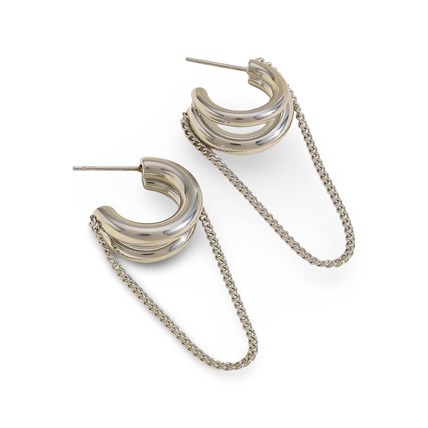 An edgy twist on the everyday hoop — these mini mixed metal earrings feature a sleek gold hoop paired with a silver chain for subtle edge and movement. Lightweight and effortless, they add just the right amount of contrast.