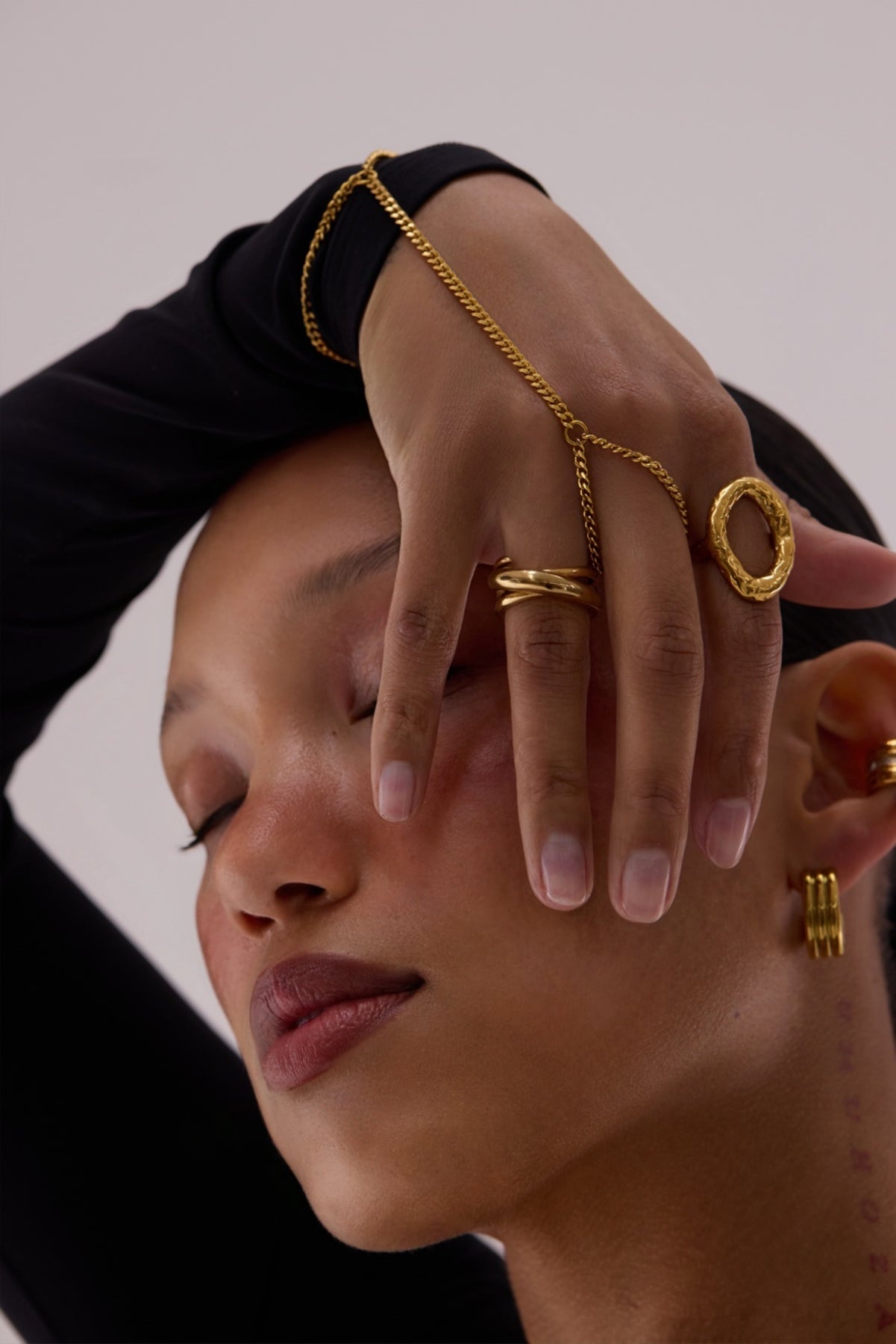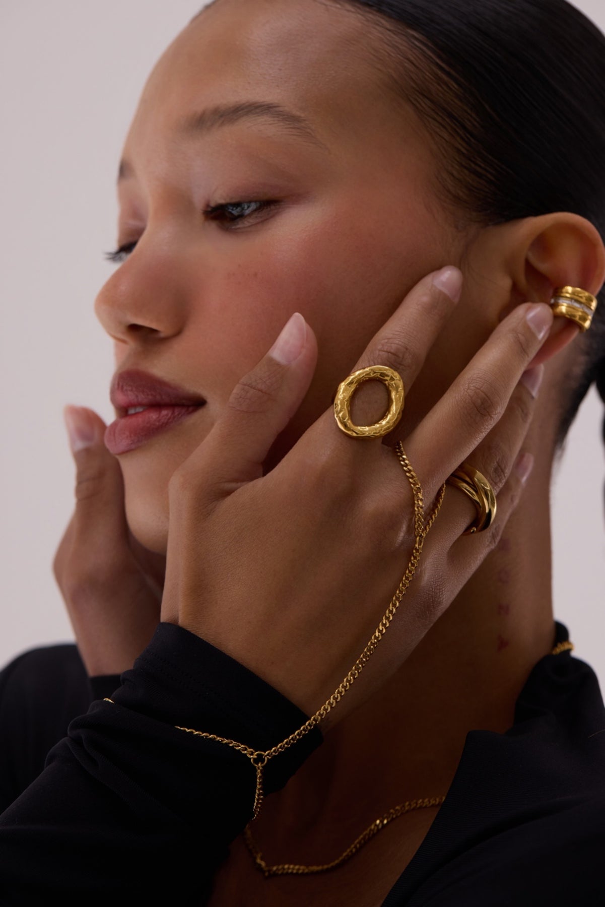 Finished in 18k gold, this piece is meant to stand alone as a statement or pair effortlessly with simpler bands. Each ring carries slight variations in surface detail, making every piece feel individual