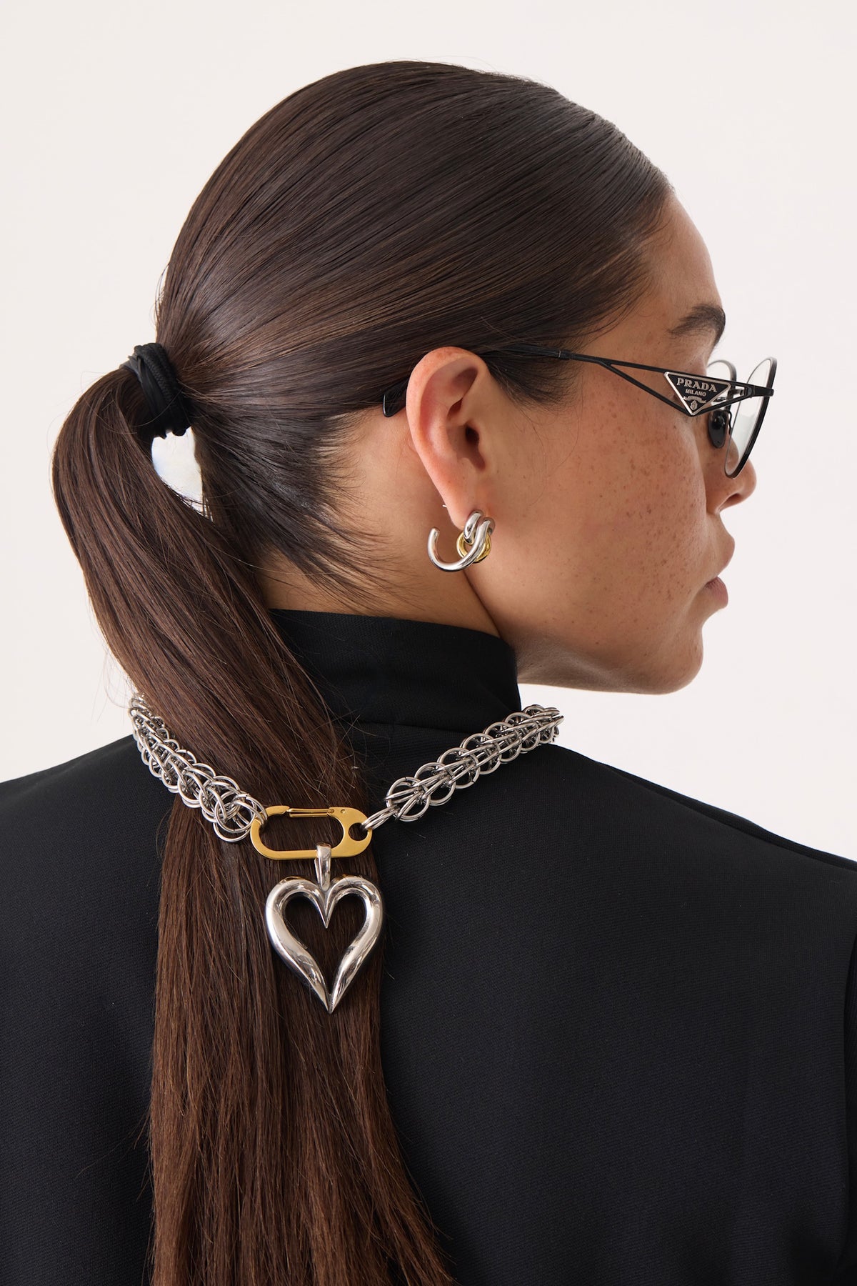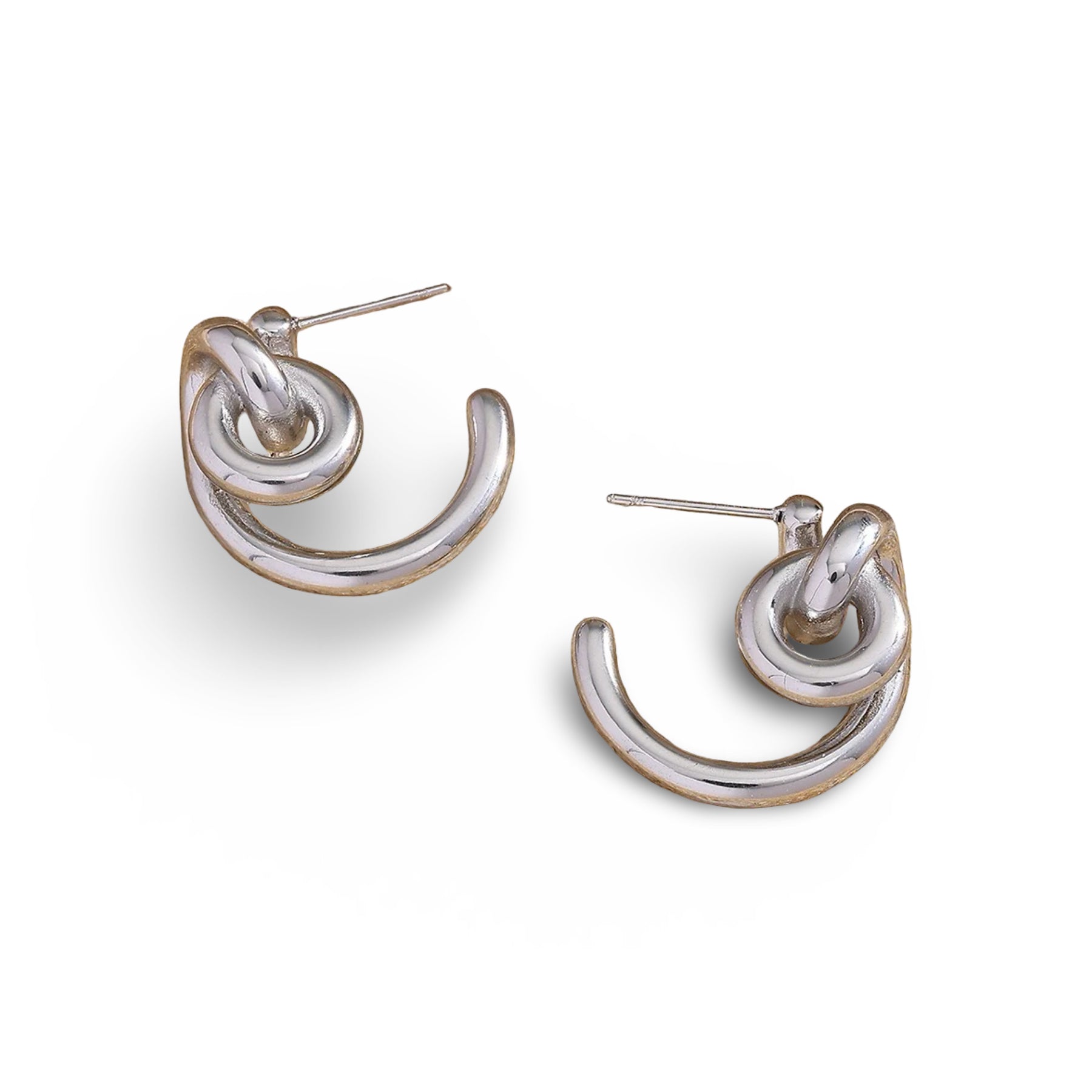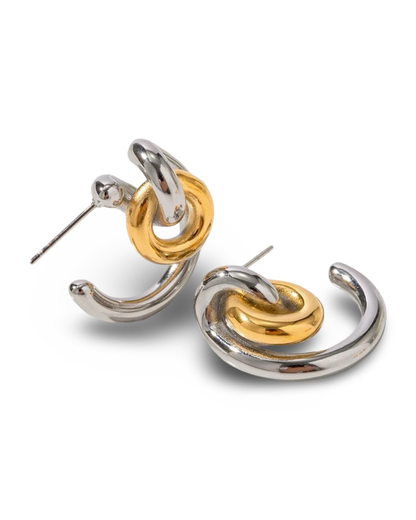 A modern take on classic hoops—features a sleek silver base with a delicate mini gold loop accent, adding subtle contrast and dimension. A refined yet unexpected detail for effortless everyday wear.