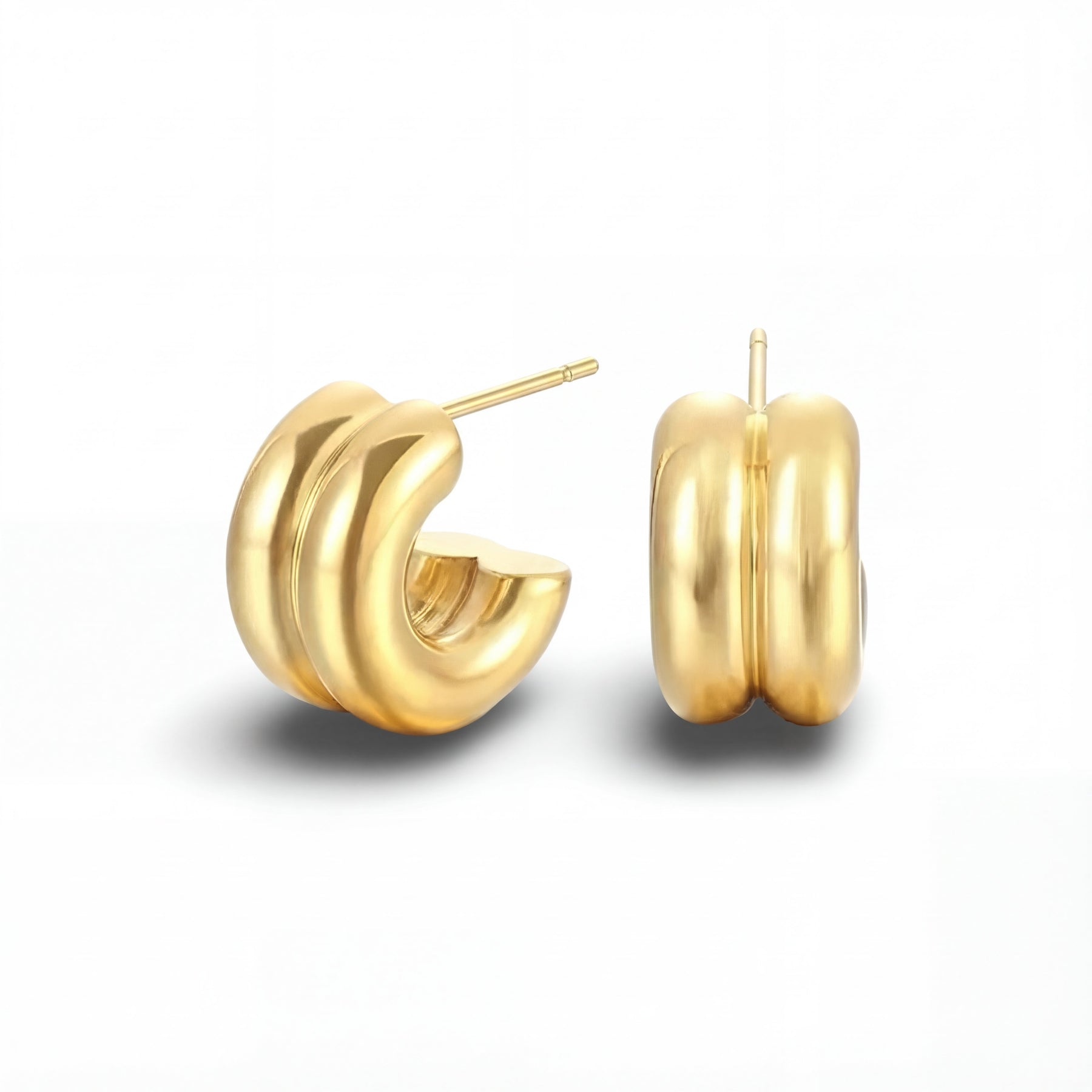 Our pieces are made with titanium steel and coated in PVD gold plating — a long-lasting, tarnish-resistant finish that’s more durable than traditional gold plating. It’s water-resistant, hypoallergenic, and safe for sensitive skin.
